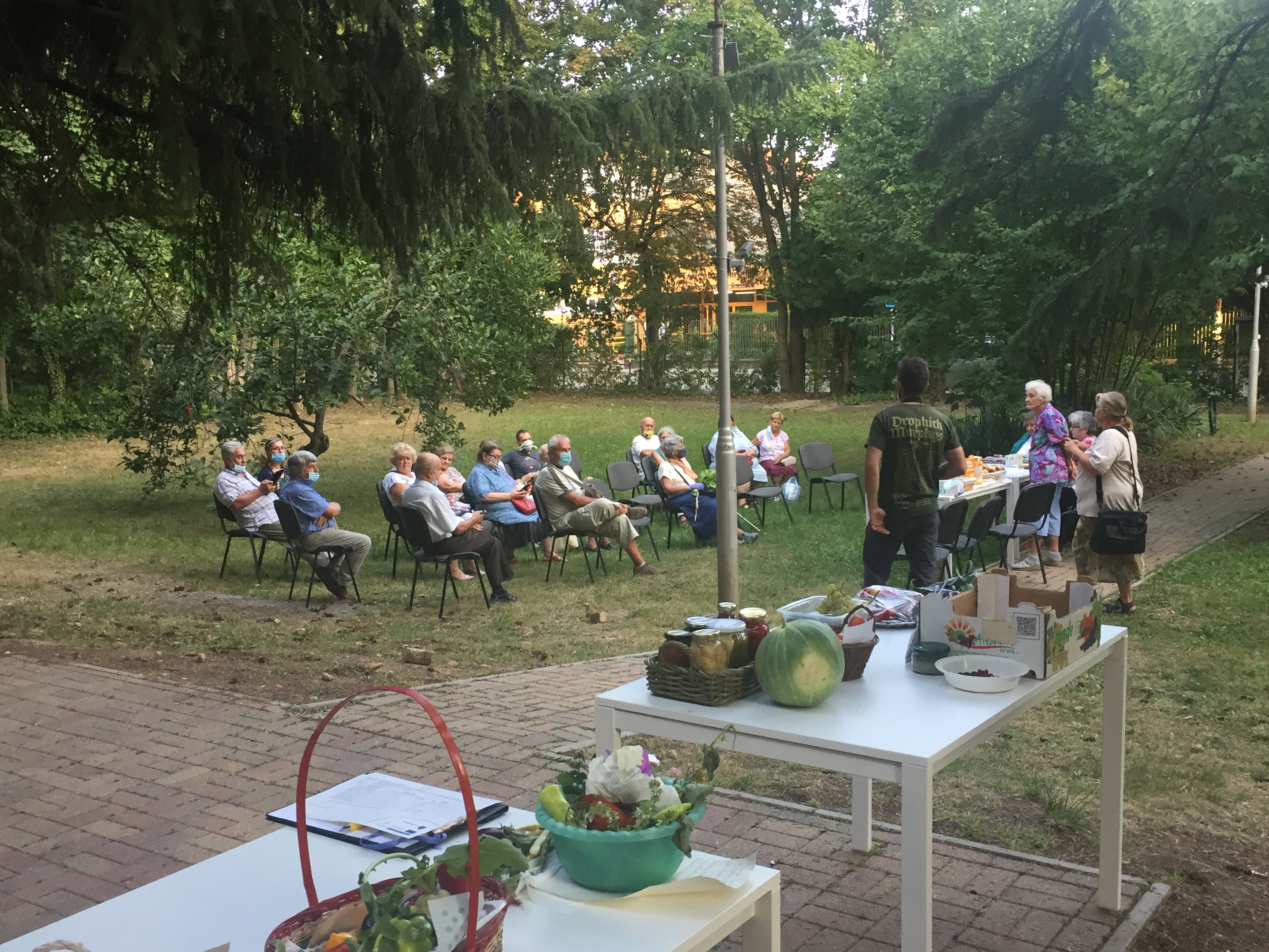 Az új helyszín miatt, a résztvevők közvetett módon tekinthettek be a kert működésébe, termésbemutató, illetve előadás formájában ismerhették meg jobban a részleteket. A kert bemutatása után a saját termesztésű növényekről volt szó, illetve az ehhez szükséges optimális energiafelhasználás lehetőségeiről, energiatudatos megoldásokról. A program interaktív formában zajlott, mindenki megosztotta a többiekkel, hogy ő milyen megoldásokat használ, milyen lehetőségekről hallott már, amit ki fog majd próbálni. Sok jó ötlet elhangzott, a résztvevők jól érezték magukat, sok hasznos információval térhettek haza, amit reményeink szerint köreikben tovább is fognak majd adni.